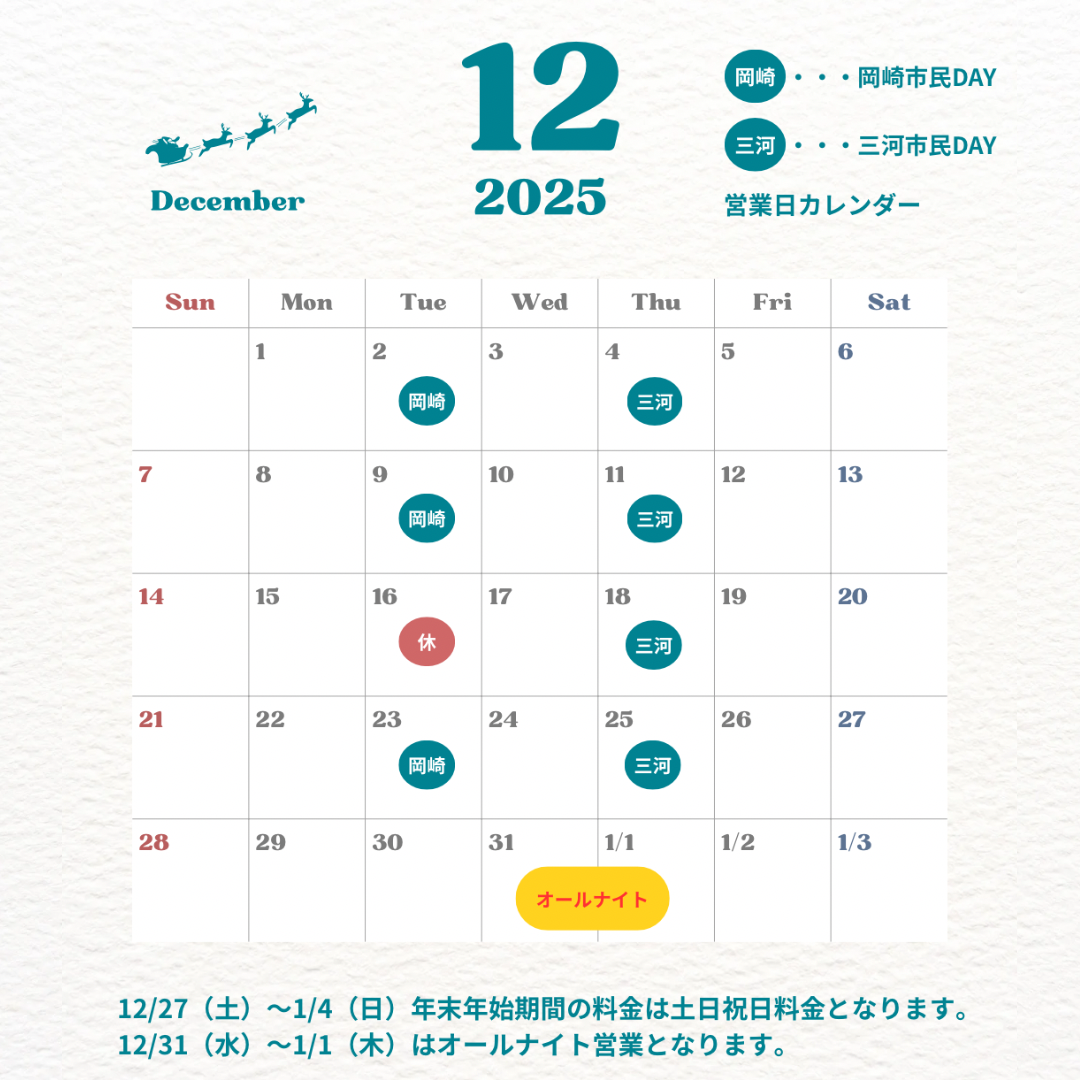 12/27(土)〜1/4(日)休まず営業! そして12/31日(水)〜1/1(木)はオールナイト営業となります! 年越しは龍城さうなで過ごしてみませんか?